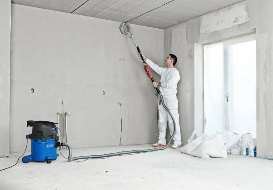 В строительстве принято использовать более мощные агрегаты, чем при домашнем ремонте. Модели отличаются высокой производительностью, качественной фильтрацией воздуха и объемными пылесборниками.