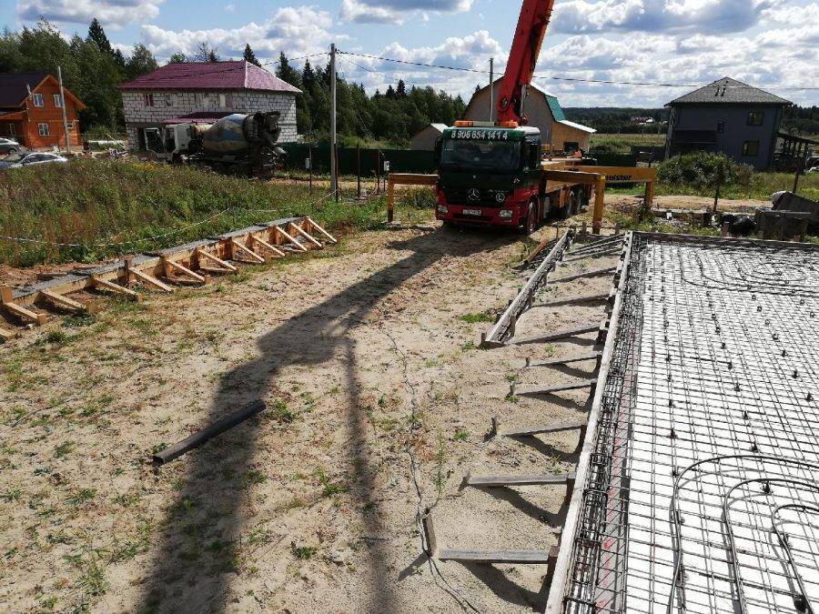 Правда, этот вариант обойдется несколько дороже (чего только стоит заказ тяжелой спецтехники – кранов, грузовиков). А потом ведь по верху плиты-основания все равно придется делать стяжку (с опалубкой и прочими «радостями» бетонной заливки). Вот поэтому такой вариант как-то не очень прижился среди наших, не самых богатых в мире, застройщиков.