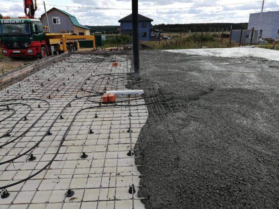 - Особенность основания — необходимость полной заливки за краткий период времени, что требует использование спецтехники.