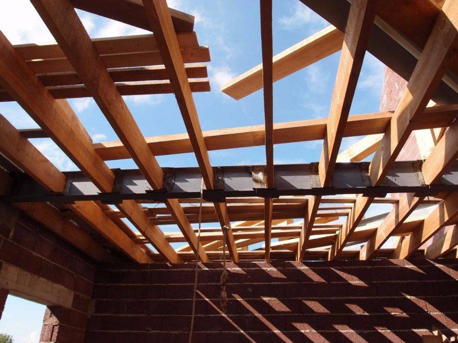 Стропильная система двухскатной крыши для большого пролета и узлы врубки конька и стропил