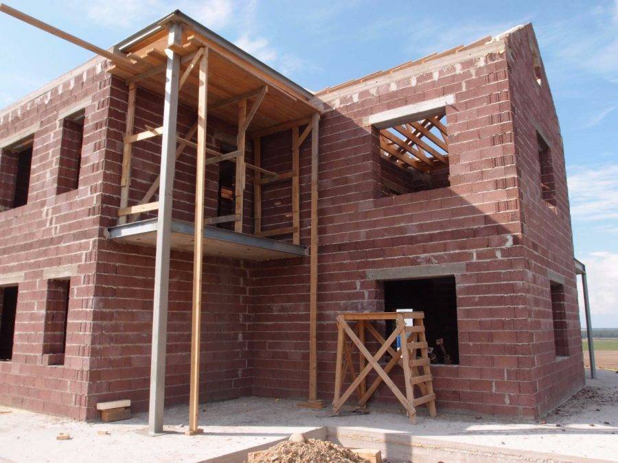 Наслонные системы собираются на высоте по месту. Все элементы монтируются последовательно. Для временной фиксации используются различные приспособления типа подпорок или прикрученной к фасаду доски. Ускоряет сборку укладка прогона (конькового бруса) перед монтажом стропил.