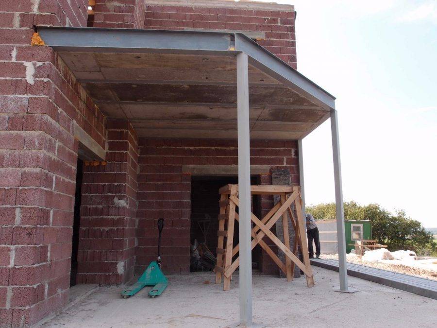 - Конструкция с коньковой балкой устанавливается сверху и базируется на стены здания при помощи стоек;