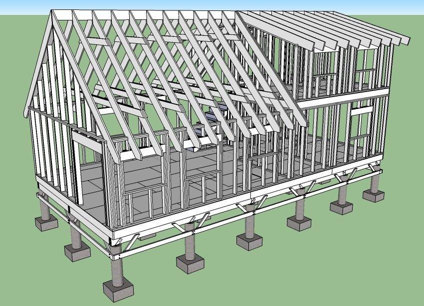 Проект каркасного дома на столбчатом фундаменте, созданный в трехмерной программе