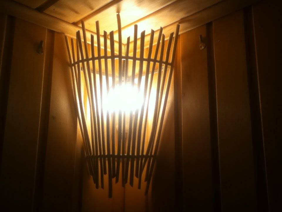 Для начала выясним, где именно он будет находиться. Потому что вы в состоянии самостоятельно полностью изготовить бра или люстру из дерева, но для освещения парной и моечной вам нужны герметичные модели бра из стекла, которые лучше купить, а самим придумать и сделать к ним симпатичный абажур. Разница — в наличии или отсутствии основы с патроном.
