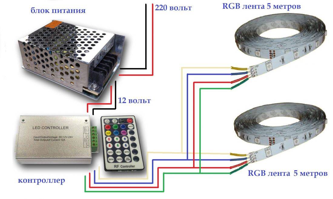 Схема параллельного подключения двух RGB-лент