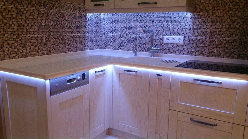 С помощью светодиодной ленты достаточно просто решить проблему подсветки рабочих поверхностей