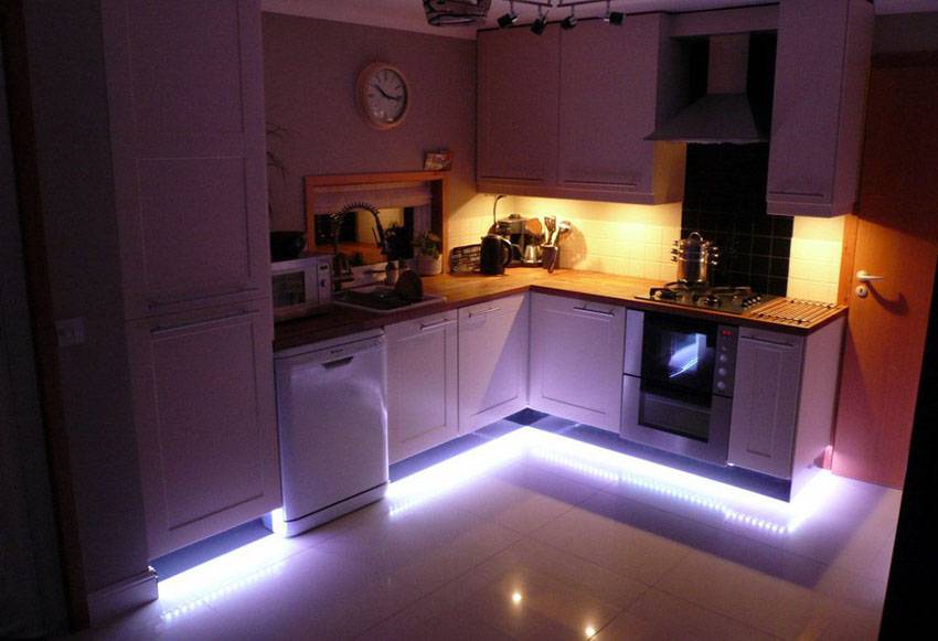 Освещение кухонных шкафов с помощью светодиодной ленты