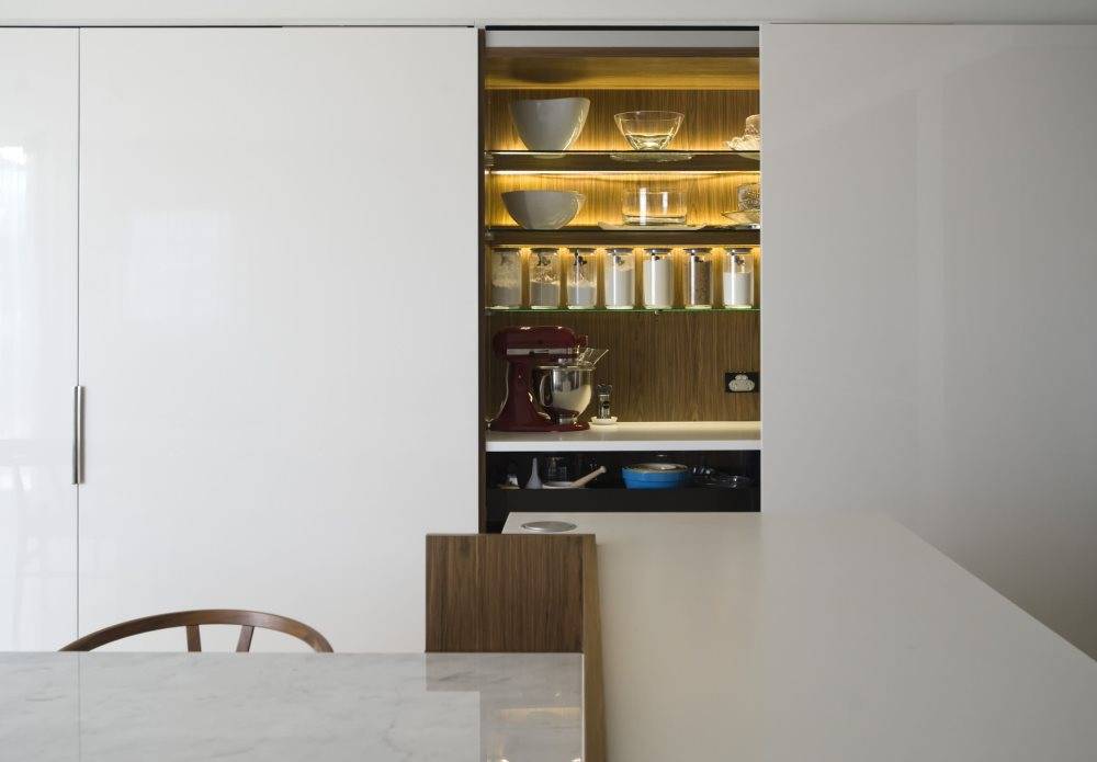 Весомый недостаток такой подсветки заключается в том, что она скрадывает внутренне пространство навесных шкафов