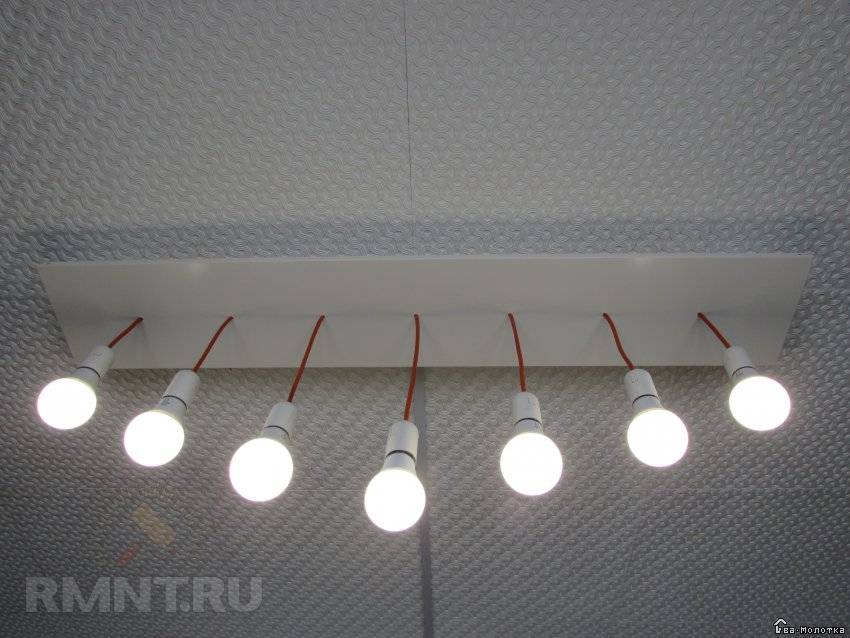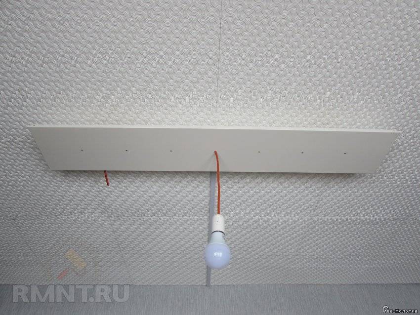 Монтаж на специальную планку имеет определённые отличия. Крюк здесь не используется, а светильник крепится на заранее подготовленную платформу.