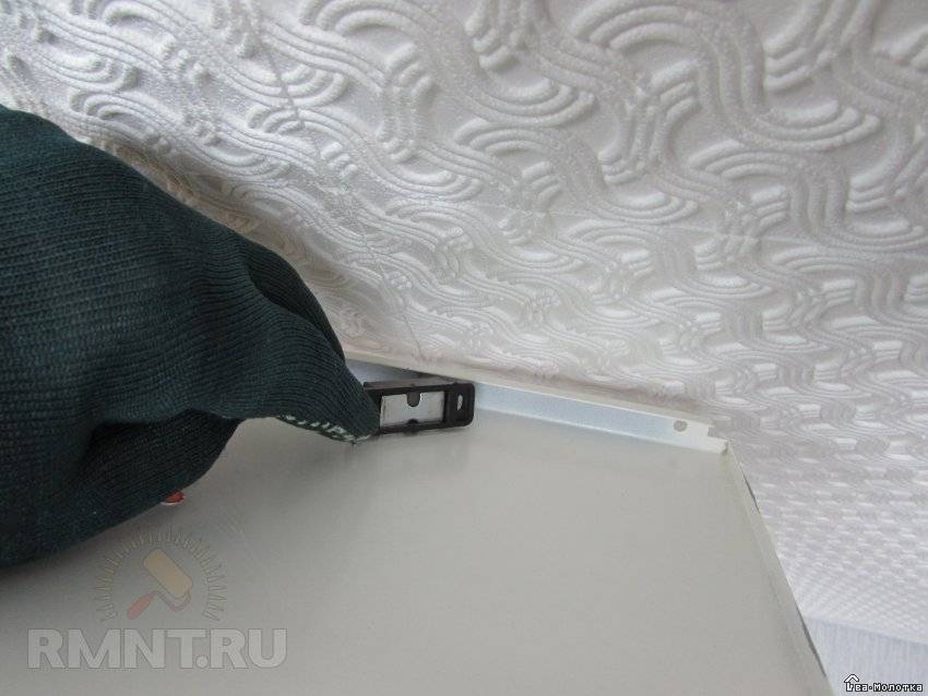 Выровняйте панель относительно потолка посредством магнитов, которые можно взять со старых шкафов.