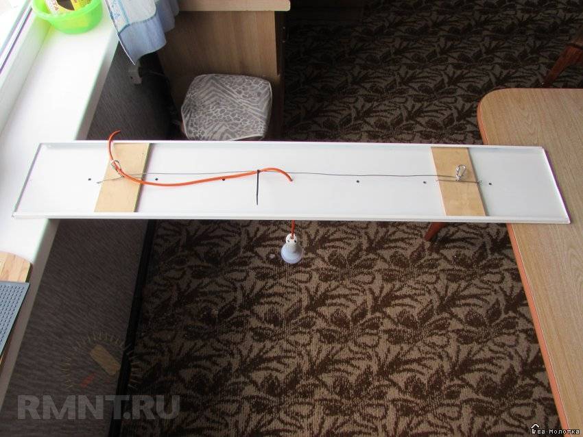 Модернизация будет производиться на базе люминесцентного светильника из четырех ламп для подвесных потолков в следующем порядке: