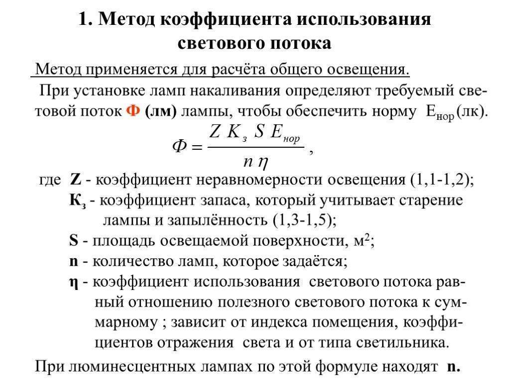 Это показатель, который находится в зависимости от того, в какой цвет выкрашены стены и потолок. Также он зависит от того, какую форму излучения имеют светильники. Эту величину можно узнать из соответствующей схематичной документации ниже