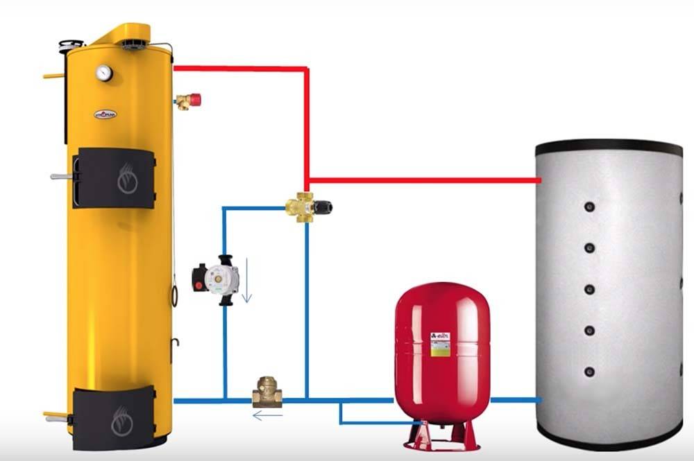 - накопить как можно больше тепла, а потом, когда закончится топливо в основном теплогенераторе, отдать его в систему отопления;