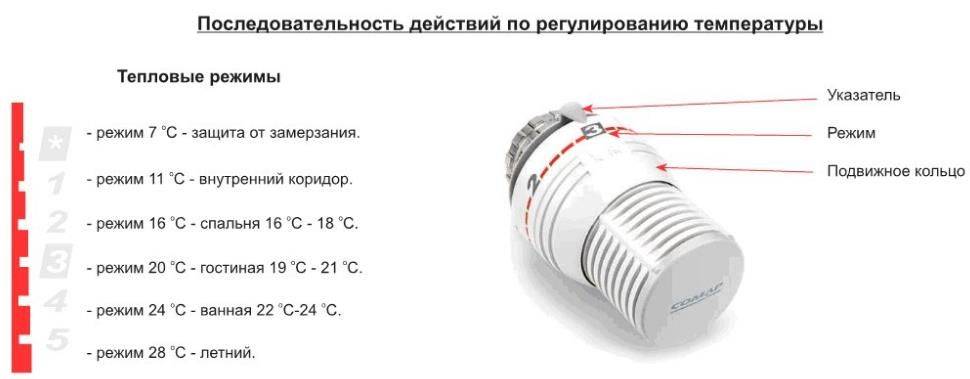 - если нужно изменить комфортность температуры, используют регулятор термоголовки.