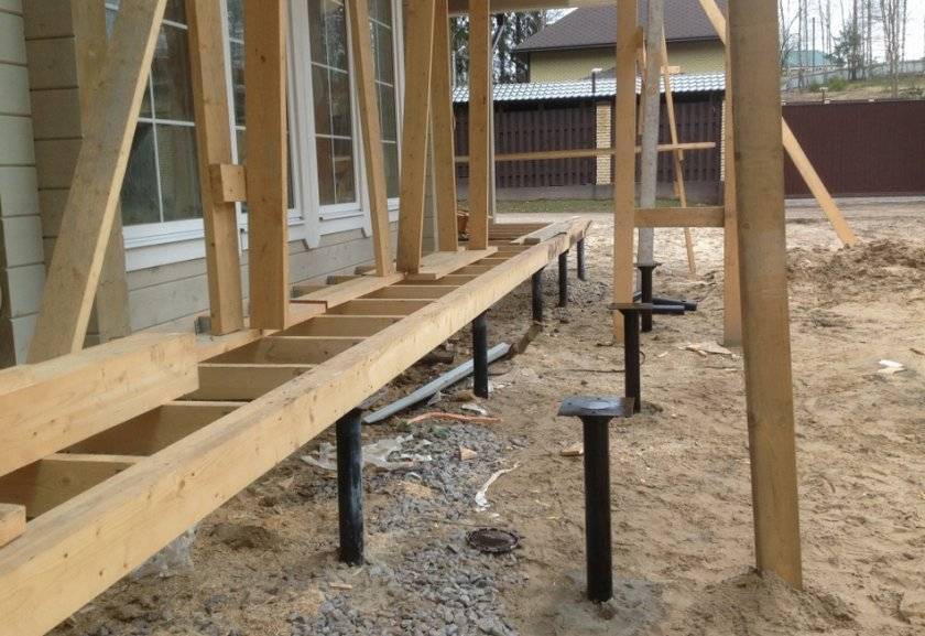 Когда свайный фундамент готов, можно приступать к следующему этапу строительства террасы.