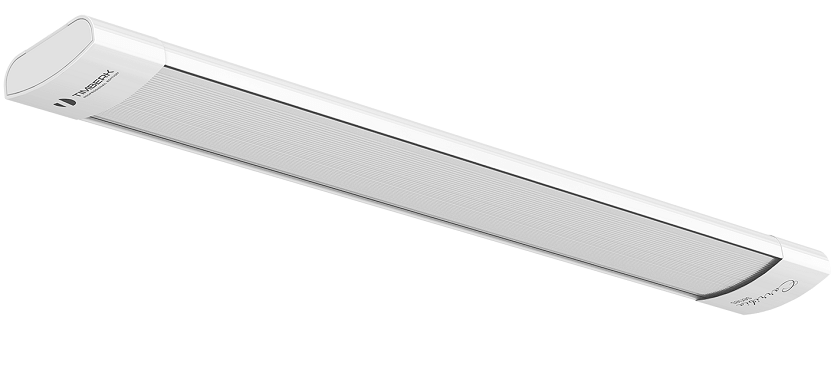 Маленький легкий прибор (55,8×25,6×13,3 см) белого или серого цвета. Мощность 1,5 кВт. Обогревает до 16 кв.м. Крепить можно на любые вертикальные поверхности и на потолок. Предусмотрена возможность монтажа на ножку, но ее потребуется приобрести отдельно. Корпус не пропускает влагу. Управляется кнопками (механически). Цена: 5000 рублей.