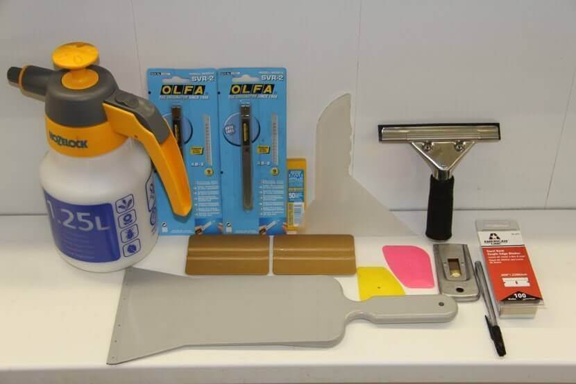 - пульверизатор для увлажнения стекла – пленка приклеивается только к мокрой поверхности;