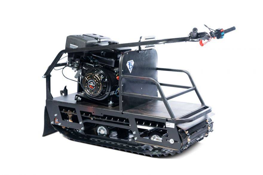 Универсальная модель, которую по достоинству оценят охотники и рыболовы в любое время года. Агрегат позволяет передвигаться как по болоту, так и по снежным заносам. Мотобуксир оборудован 9-сильным мотором. Расходование бензина за час – 2,5 л. Тип привода — передний, что улучшает проходимость модели. Максимальная грузоподъемность на 2 сцепленных санках-волокушах — по 125 кг.