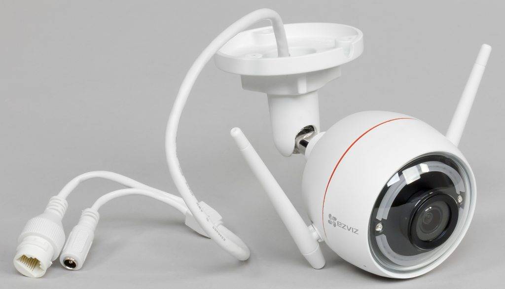 Цилиндрическая камера имеет диаметр 70 мм, по длине от основания — 185 мм, над объективом выступает небольшой козырек, сзади торчит Wi-Fi антенна, заявлена защита по IP65. Из недр корпуса через монтажную планку выходит провод с разъемами RJ-45, 12 В и кнопкой reset.