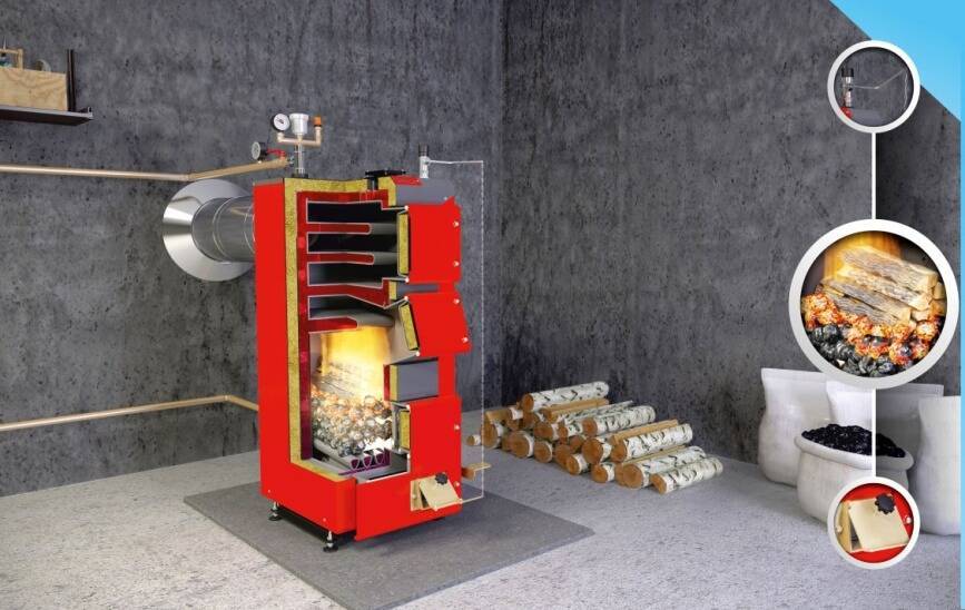 Что касается особенностей твердотопливных котлов, то их есть несколько: