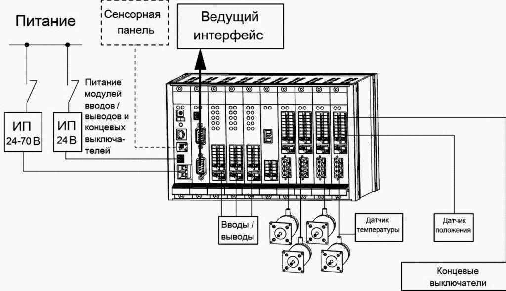 - в корпусе может находиться ПЛК и графическая панель оператора;