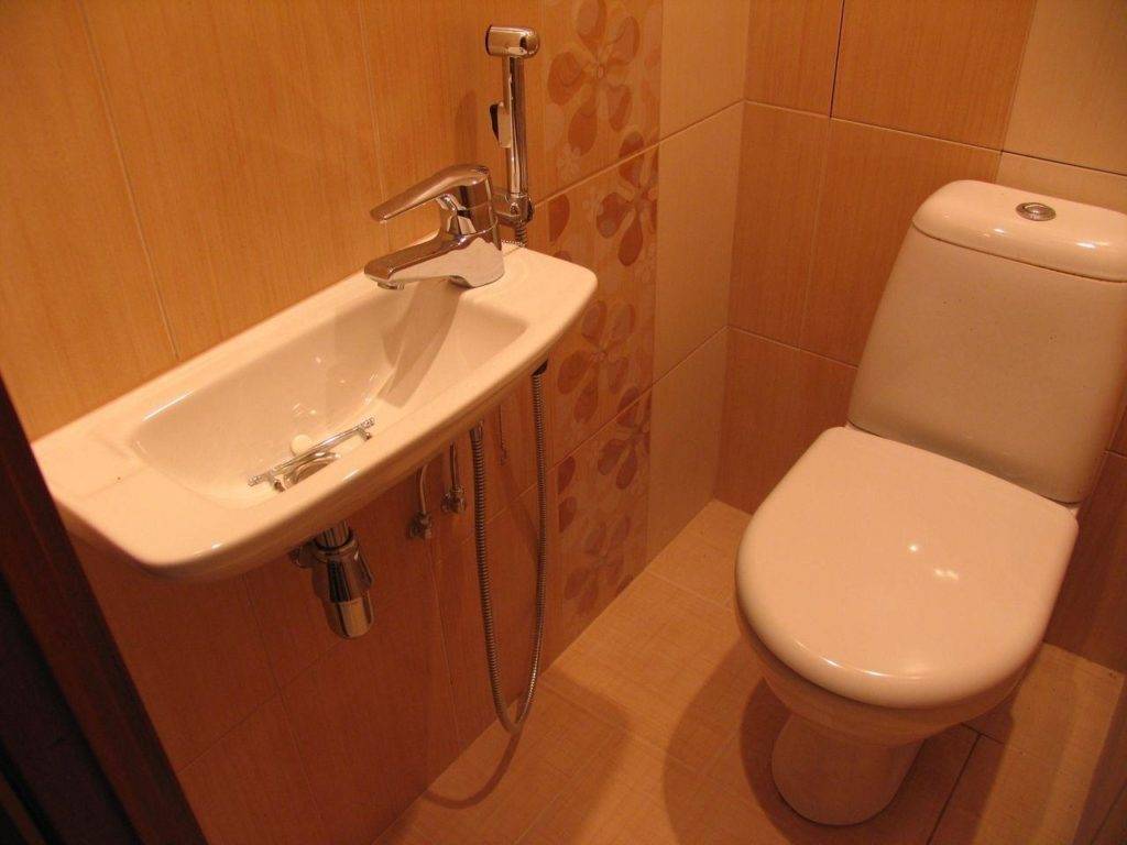 - конструкцию гигиенического душа любой вариации исполнения можно установить даже в самой маленькой туалетной комнате, куда не получится вмонтировать обычную раковину;