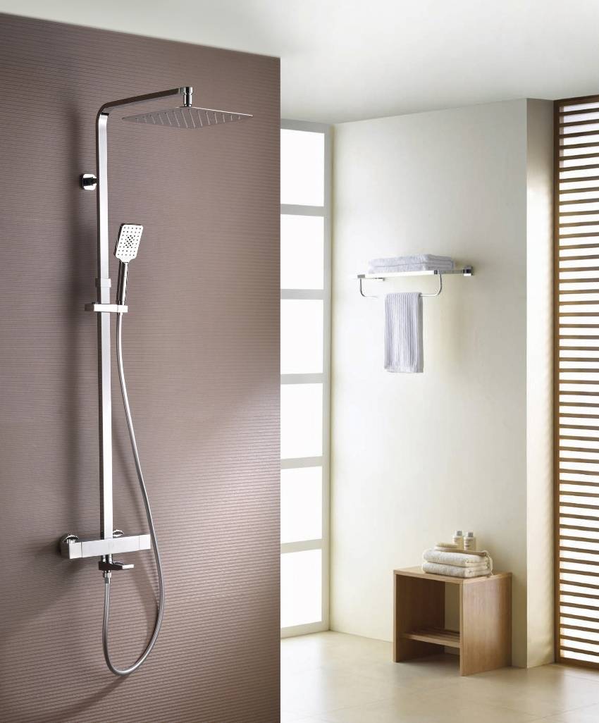 Стойки для душа являются универсальными установками и подходят как для душевой кабинки, так и для ванной. При приобретении продукции стоит внимательно отнестись к комплектации. Должен присутствовать обязательный минимальный набор в виде штанги, лейки и шланга. Если есть желание мыться более комфортно, выберите модель со смесителем и термостатом.