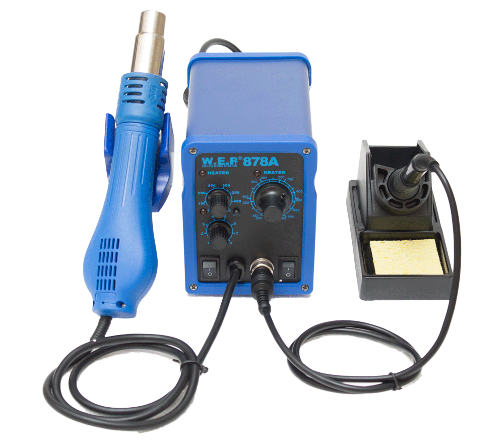 Термовоздушная паяльная станция мощностью в 350 ватт и максимальной температурой 480 градусов. Имеет внушительный вес, но при этом проста и удобна в использовании. В комплект входит подставка и держатель для фена, который оснащен функцией автоматического отключения. Подходит для пайки микросхем, а также для ремонта бытовых приборов и электротехники. Прибор оснащен терморегулятором, а его стоимость составляет от 5250 до 6590 руб.