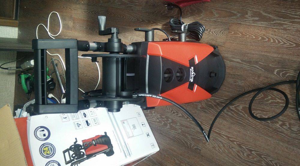 Это устройство рассчитано в первую очередь для мойки автомобиля. Оснащается мотором в 2,3 кВт мощности. Длины шланга вполне достаточно для качественного выполнения стоящих перед ним задач