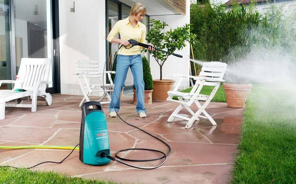 Здесь же стоит сделать оговорку о функции регулировки давления. Чаще всего она реализована поворотом насадки на пистолете, но наличие такой функции должно иметь место быть, это делает минимойку гораздо более универсальной.