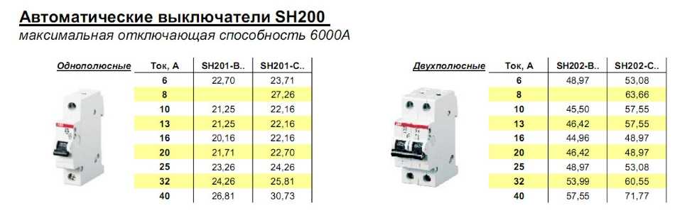 - в бытовых условиях чаще всего применяются модели с токовым номиналом 6, 16, 25, 32 и 40 А.