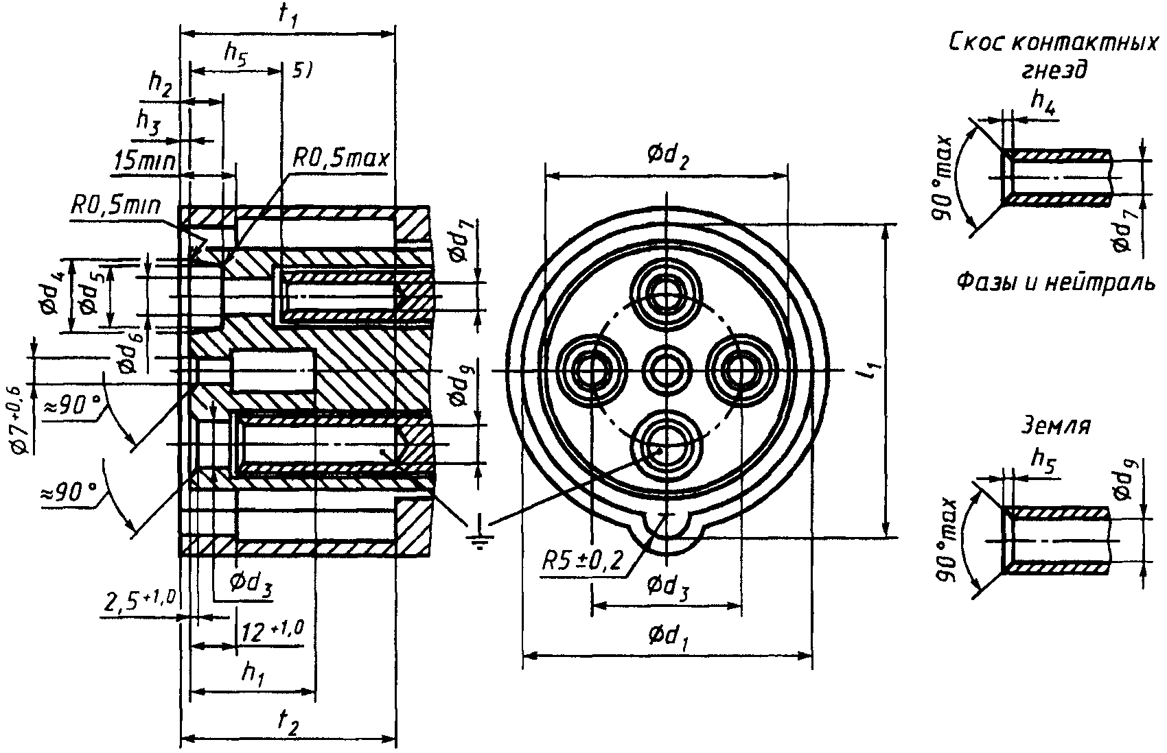 Основными составными частями силовой розетки, рассчитанной на напряжение 380 вольт, являются: