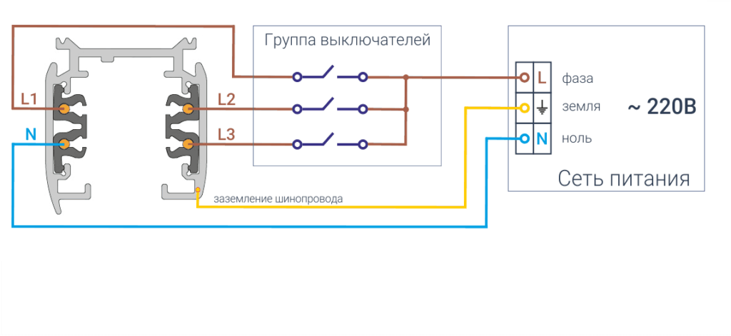 Схема подключения трехфазной трековой системы