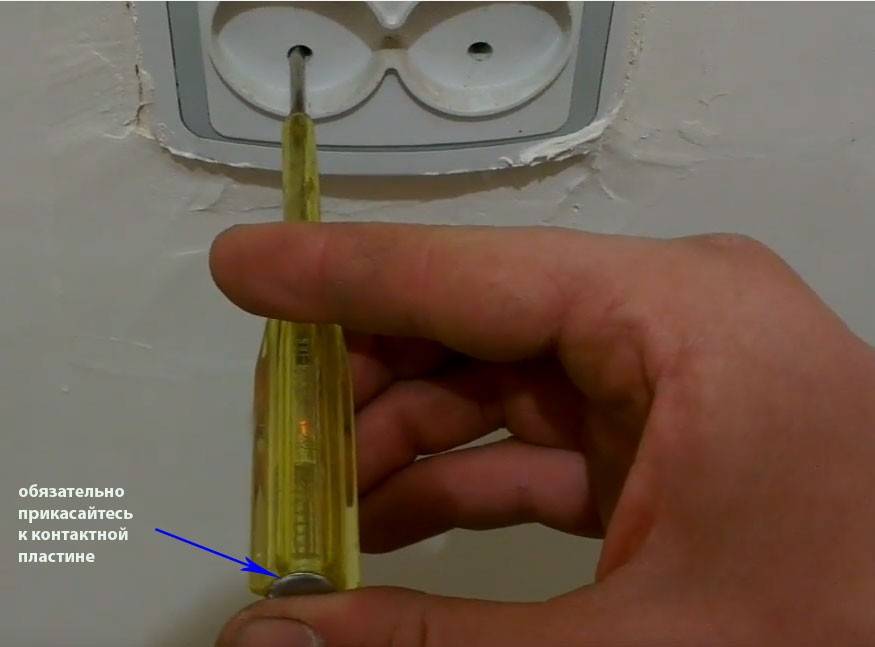При работе необходимо дотронуться до испытуемого участка с учётом того, какое напряжение может там иметься, и попадает ли оно в рабочий интервал индикатора.