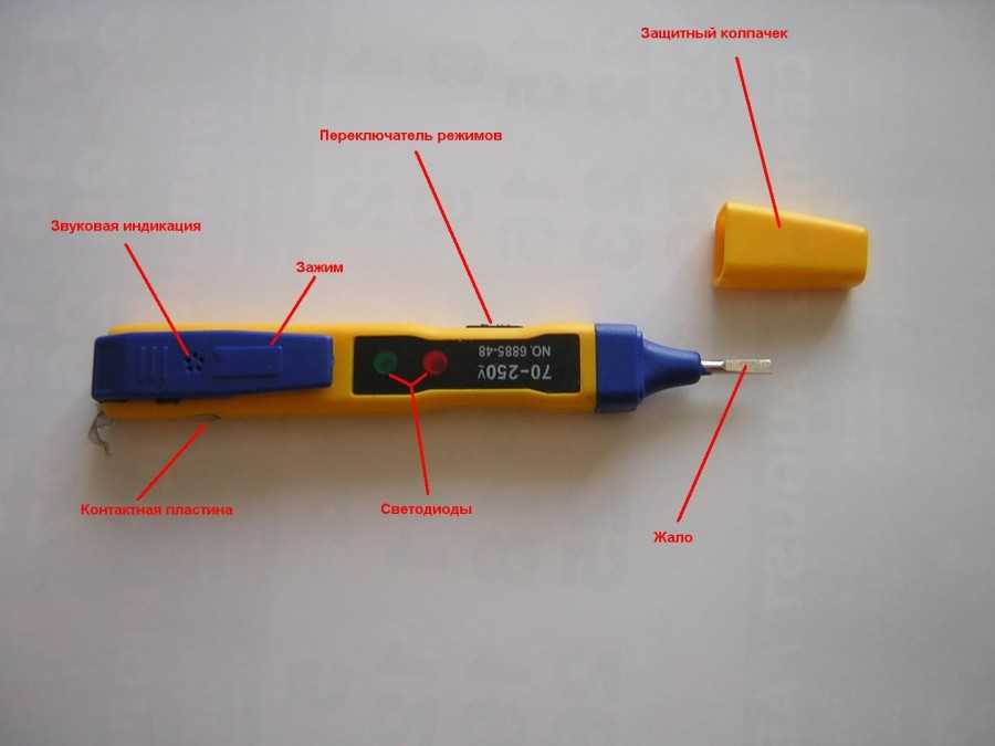 Указатели работают от ёмкостного тока. Он протекает через руки и контактную точку на указателе. Величины тока достаточно, чтобы сработал индикатор.
