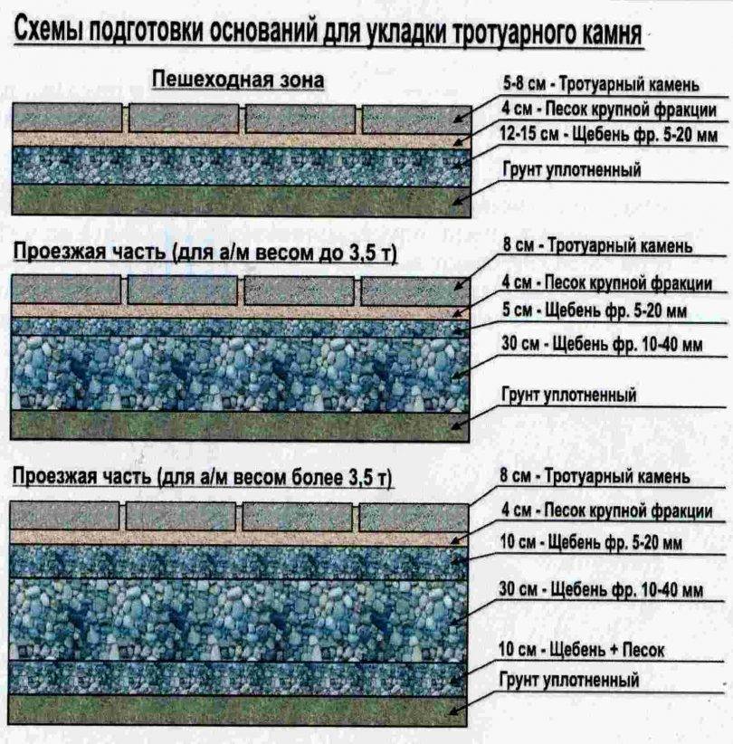 Основанием укладки является смесь из песка/щебня. Нет существенной разницы в том, на что именно выкладывать плитку – раствор, сухая смесь. В редких случаях вам потребуется усиление. Например, в виде стяжки из бетона.