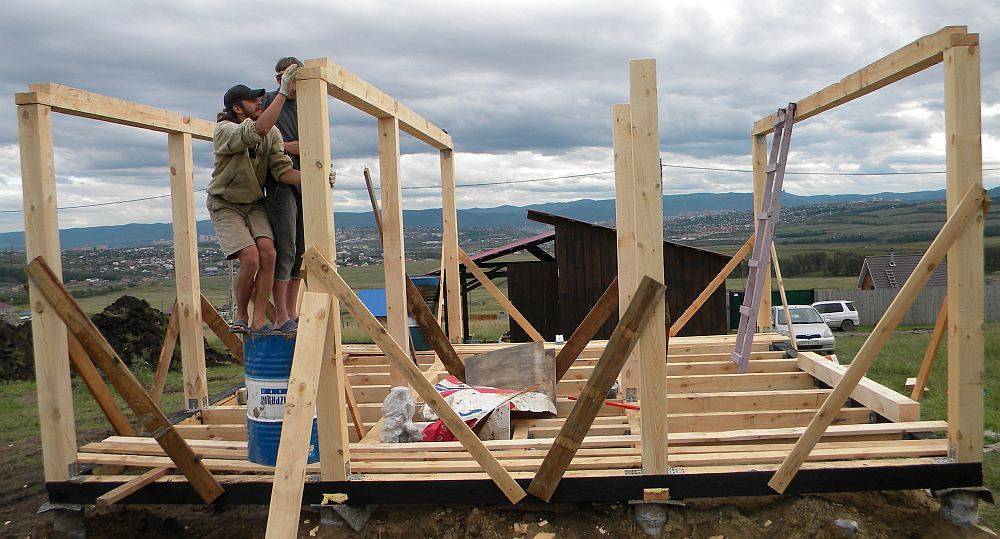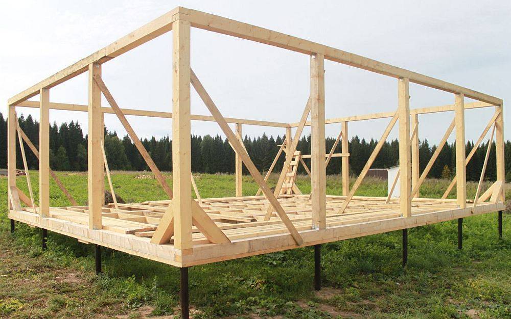 Именно поэтому традиционно строительство каркасного здания начинается с возведения угловых стоек.