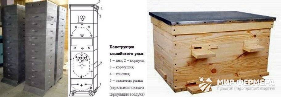 Сама конструкция пчелиного дома кардинально отличается от всех, о которых говорилось ранее, причем не только строением, но и размерами. Именно по этой причине содержание подобных ульев не очень удобно. Достаточно сложно подобрать под нестандартные рамки подходящую медогонку. Но по производительности альпийские ульи обгоняют любые другие даже в не медоносный год.