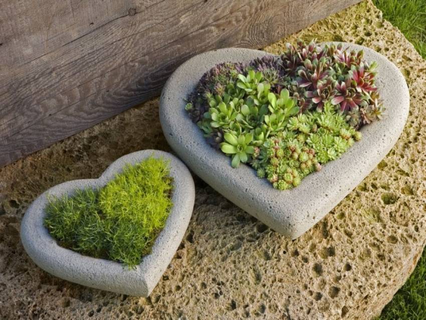 Из цемента изготавливаются как цветочные вазоны очень больших размеров, так и небольшие горшки для цветов. Чем хорош бетон, так это своей пластичностью, что позволяет ему принять практически любую придуманную вами форму. Смесь можно изготовить в домашних условиях из цементного раствора с добавлением других компонентов. Чтобы изготовить такие конструкции, можно использовать самый обыкновенный бетон, который приготавливают смешением раствора цемента и песка в соотношении 1:3 или 1:4.