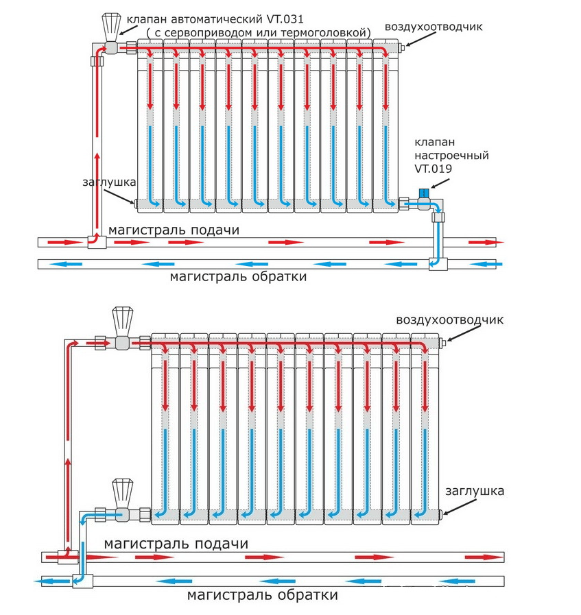 Схема подключения радиаторов к двухтрубной системе отопления.