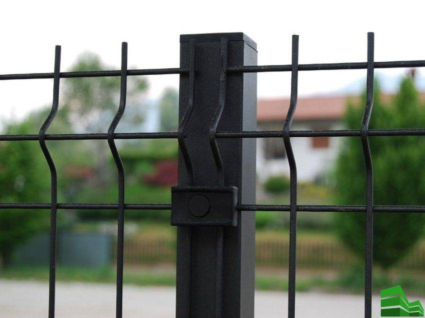 Опорные столбы. Без них никак не обойтись. Именно к ним приваривается секция 3d для забора. Если говорить о форме опорных столбов ограждения, то она бывает разная. Самые ходовые варианты: столб круглого и квадратного сечения. Обычно столбы делаются из металла, толщиной листа 1,5–2 мм. Благодаря этому элемент становится надежным, прочным и долговечным. А чтобы внутрь столба не проникали разного рода осадки, мусор и пыль, они оборудуются специальными заглушками