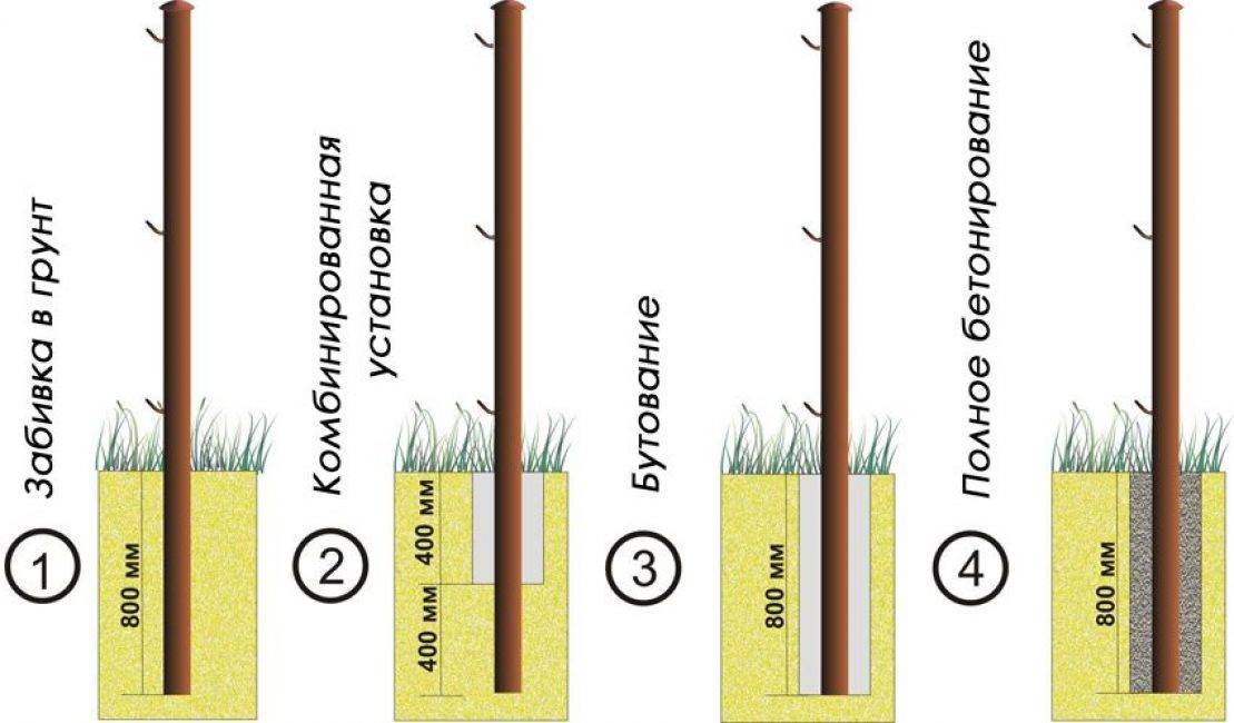 Прежде чем начать монтажные работы, рекомендуется определиться с методом установки опорных столбов: