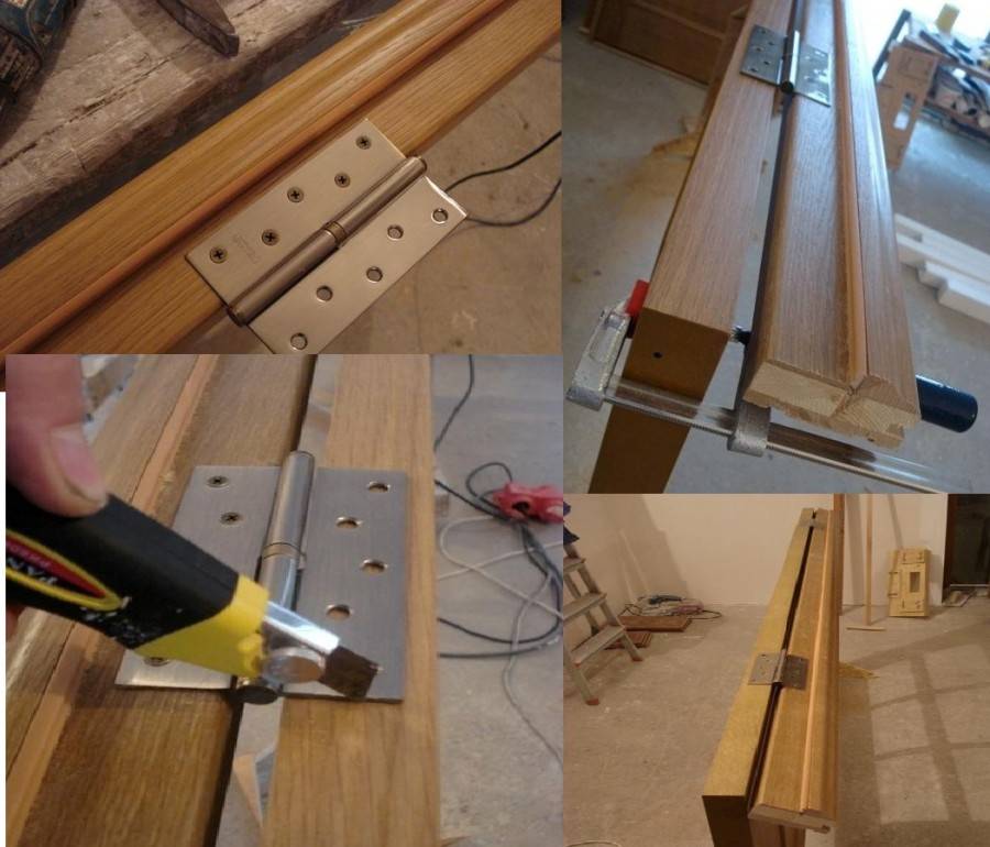 После того как просверлены отверстия под петли, можно приступить к сборке коробки двери.