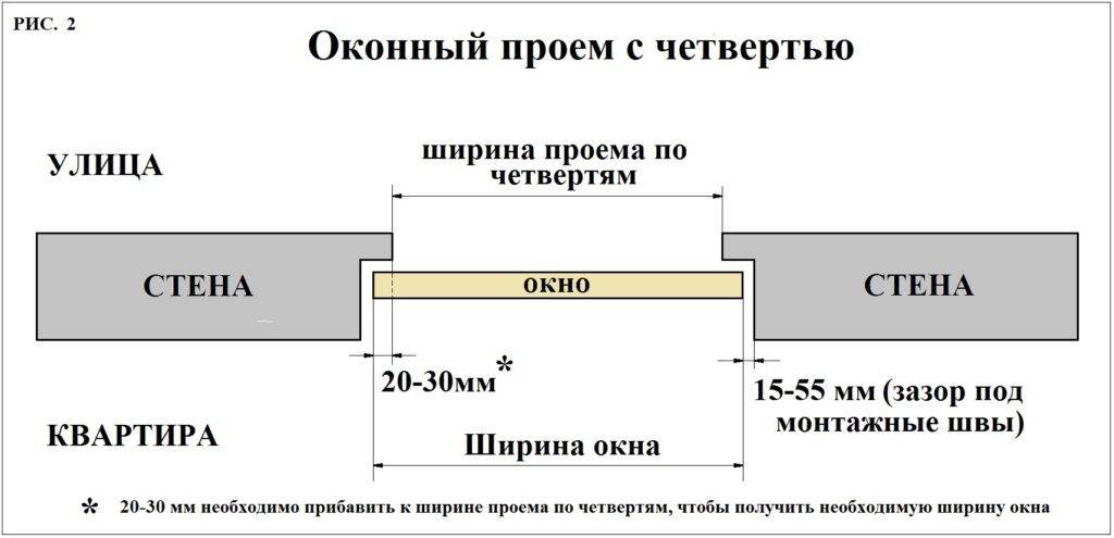 Прежде чем приступать к измерению, не упустите важный момент – какого вида у вас проём: с четвертью или без. Посмотрите внимательно на проем окна: если наружная часть уже, значит, перед вами проем в четверть. Измерение производится следующим образом: необходимо замерить самую узкую часть, промерить нужно будет в нескольких местах, найти наименьшее значение, прибавить к нему 3 см. Высота указывается так как есть. Если ваш проем ровный, тогда измерения делают так: измерив ширину, отнимается 3 см; измерив высоту, минусуется 5 см. Читайте подробную статью о замере окон.