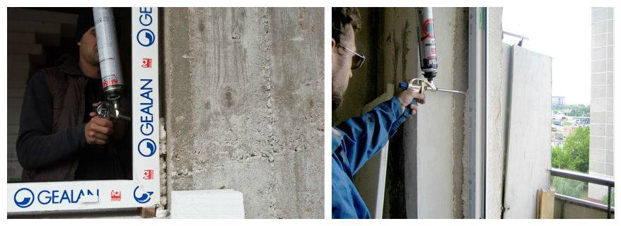 Наконец, до нанесения всех составов бетон грунтуется. Какой праймер для этого использовать, зависит от применяемых для монтажа связующих. В конечном итоге рекомендуется еще применить гидроизолирующую грунтовку, чтобы гарантированно избежать проникновения воды из стены в шов, что привело бы к выкрашиванию пены.