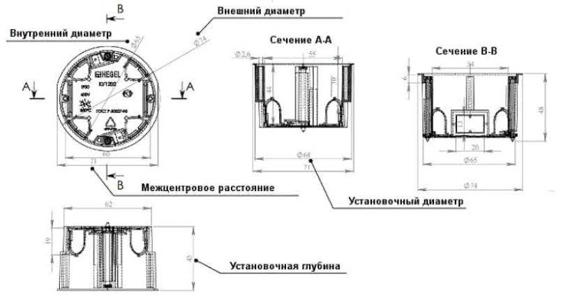 - Стандарты таковы, что внутренний диаметр подрозетника для бетона может варьироваться совсем в небольшом диапазоне: от 60 до 68 миллиметров.