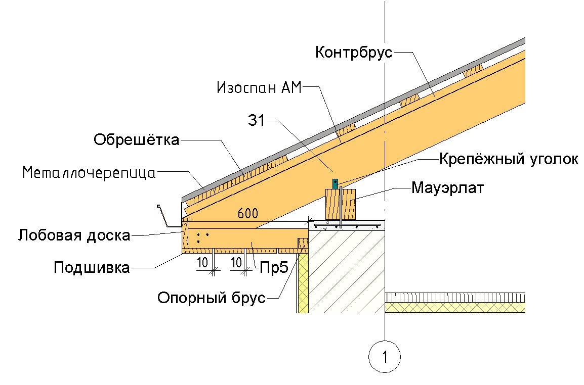 Обратите внимание на то, что в этой схеме присутствует мауэрлат, а стропильные ноги для повышения устойчивости конструкции должны выходить за пределы стен. Для их закрепления и стыковки с мауэрлатом делается врубка в виде треугольника