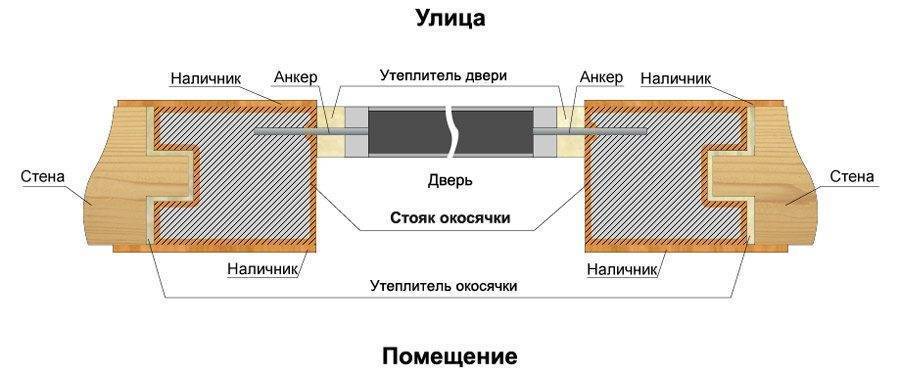 Еще один важный момент при заказе — утеплитель должен быть не только в полотне двери, но и внутри дверной коробки.