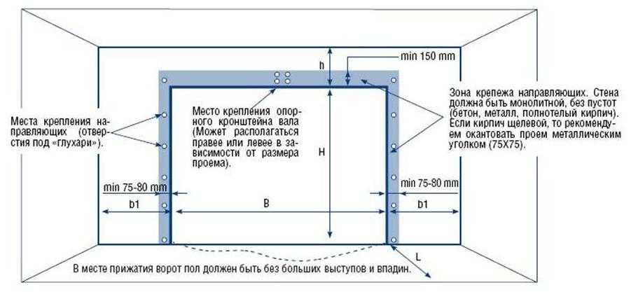 Основными габаритами гаража, которые необходимо учесть для установки секционных ворот, являются: