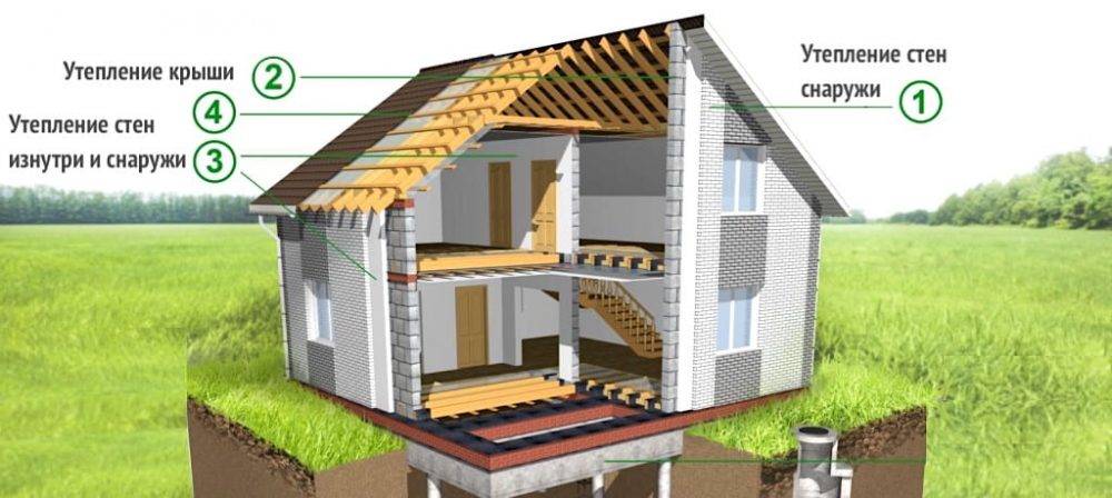 Сразу стоит сказать, что, как и для любого другого утепления, стены зданий предпочтительнее утеплять снаружи. Если утеплить изнутри, то наружная стена будет промерзать. Сколько циклов разморозки/заморозки она выдержит — зависит от материала, но редко такой дом будет служить более 10 лет.